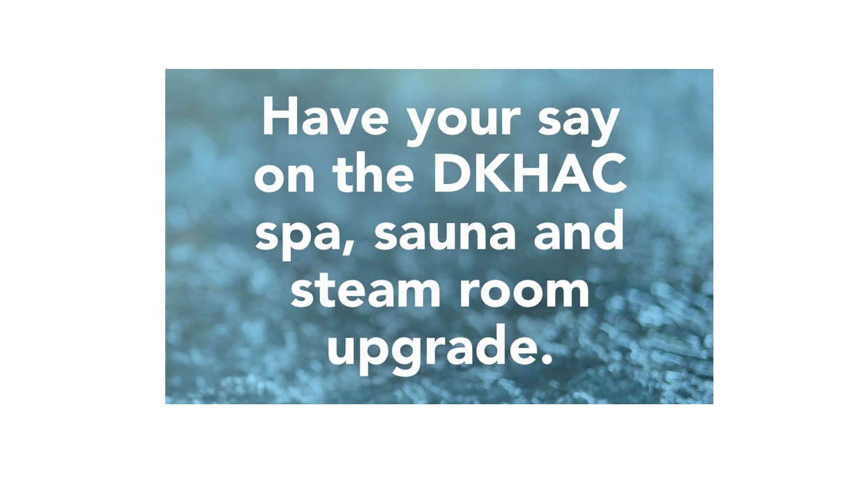 Have your say on the DKHAC spa, sauna, and steam room upgrade. Share your ideas and what is important to you in this short online survey. Your input is essential in helping us create a more accessible and enjoyable space for all.