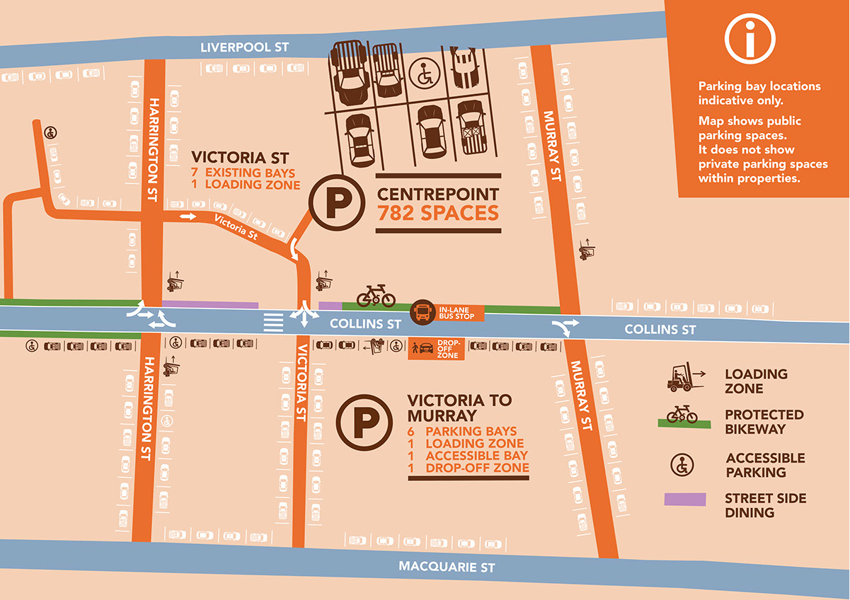 The original Council resolution from 2024 removed all parking in the block between Victoria and Murray Street. This was revisited by Council following feedback from stakeholders. A resolution at the 31 March 2025 Council meeting determined that the previously advertised trial design between Victoria and Murray Street would be replaced with a new design. The new design retained: